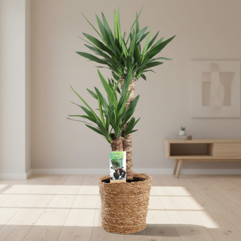 Yucca is a tough, robust houseplant with a striking, tropical appearance. Its sturdy trunk and sword-shaped leaves give it a bold look, perfect for modern interiors. Yucca is very low-maintenance and tolerant of dry air, making it ideal for both homes and offices.