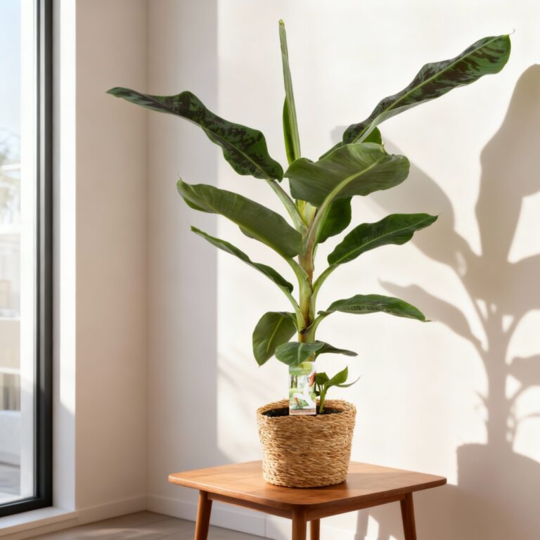 Musa, better known as the banana plant, is a true tropical eye-catcher with its large green leaves that bring a jungle vibe into the home. Musa grows quickly and adds a lively atmosphere. Perfect for a sunny spot in the house — an exotic statement for any plant lover.
